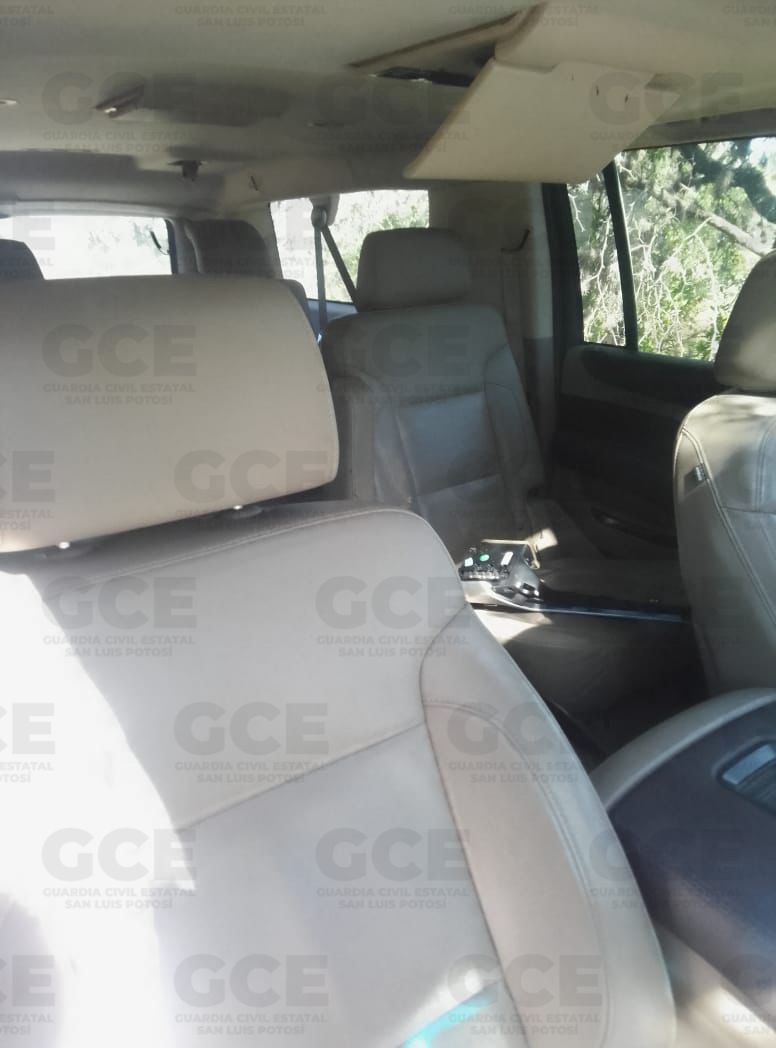 Los agentes ubicaron tres vehículos: una camioneta Ford color blanco con placas del estado de Querétaro, una camioneta Lincoln Navigator con placas del estado de Morelos y una Chevrolet Suburban color negro sin placas, todas ellas con reporte de robo con violencia en el estado de Nuevo León.