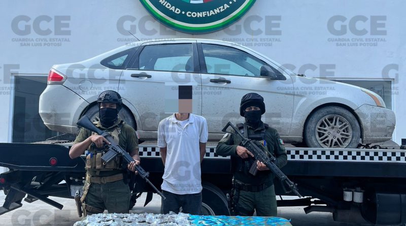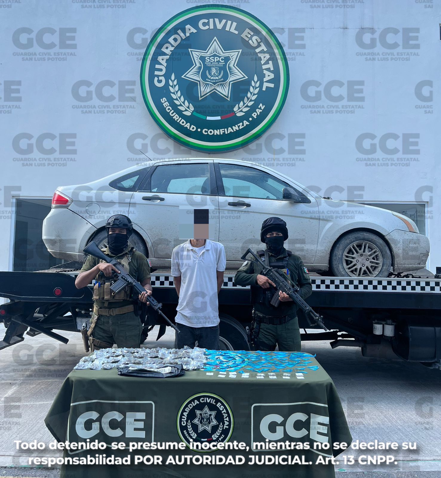 Como parte de los distintos operativos de seguridad y prevención que se efectúan en la Huasteca potosina, elementos de la Guardia Civil Estatal de la región Huasteca detuvieron a Jonathan “N” de 23 años cuando se desplazaba a bordo de un automóvil Ford Focus modelo 2009.