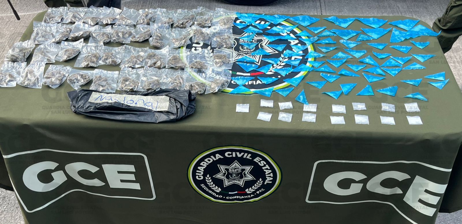 Ciudad Valles, S.L.P.- Agentes de la Guardia Civil Estatal detuvieron a un hombre en el municipio de Ciudad Valles, luego de que se le detuviera a bordo de un automóvil con 130 dosis de droga.