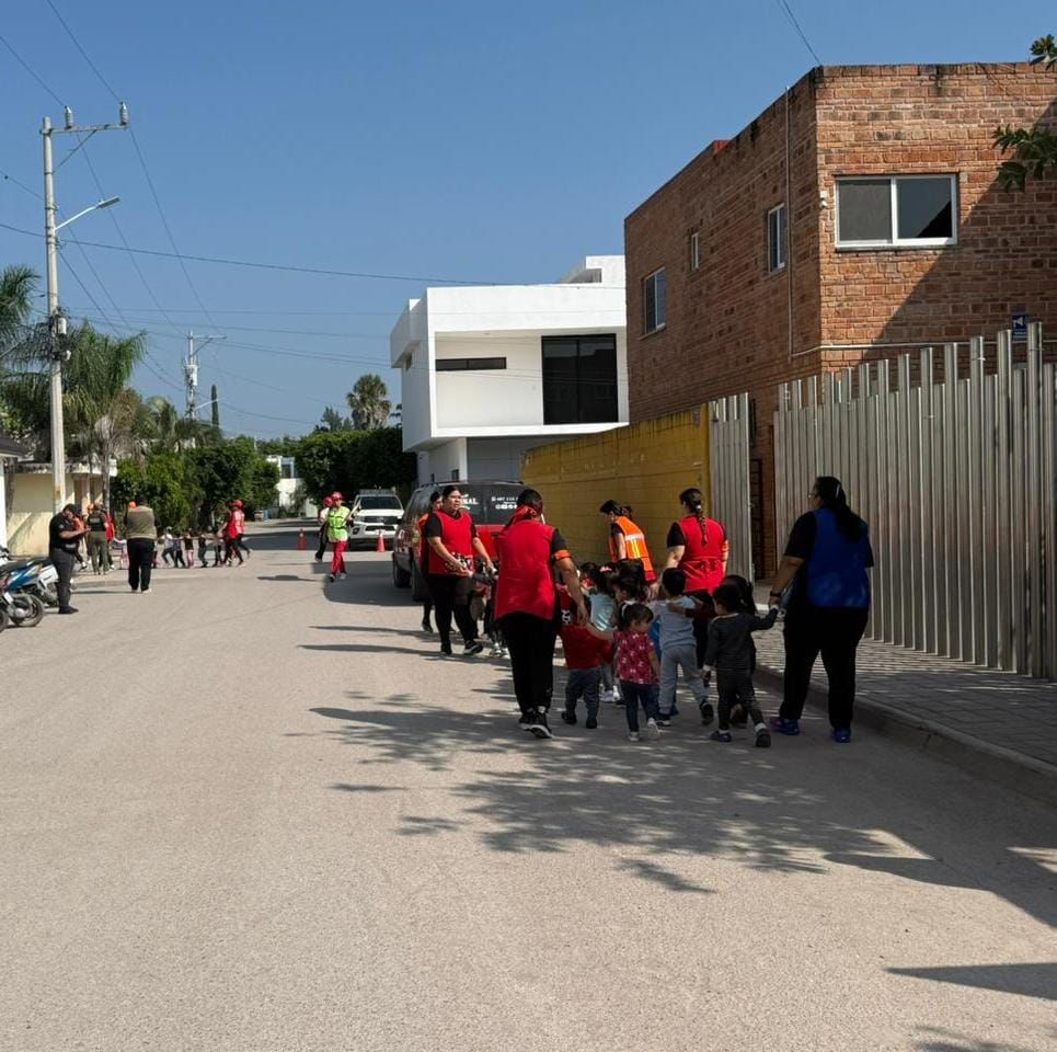 El ejercicio, tuvo como propósito fortalecer los protocolos de reacción y seguridad en espacios educativos, especialmente en instituciones que atienden a niñas y niños de primera infancia. El protocolo contó con la participaron de 99niños y niñas y 42 docentes, quienes, bajo la supervisión del personal de Protección Civil Municipal, la Guardia Civil Estatal y la Cruz Roja Mexicana, realizaron con éxito la evacuación y concentración en puntos seguros.