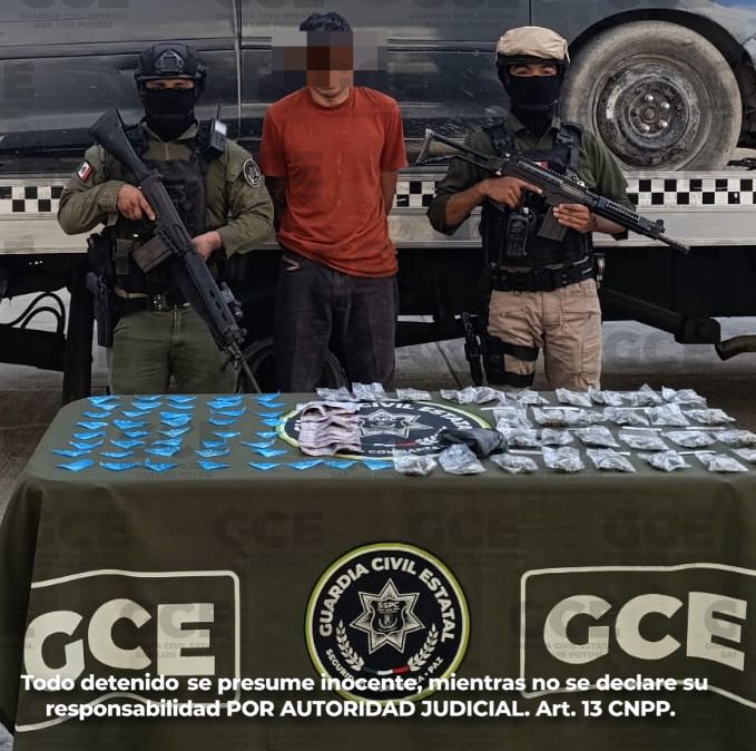 Nuestros agentes de la Guardia Civil Estatal, desplegaron un operativo en la colonia Estación, sitio donde detuvieron a José «N» de 43 años de edad, por los probables delitos de posesión de droga, tras asegurarles 43 dosis de metanfetaminas, 30 de marihuana y 10 cigarros artesanales.