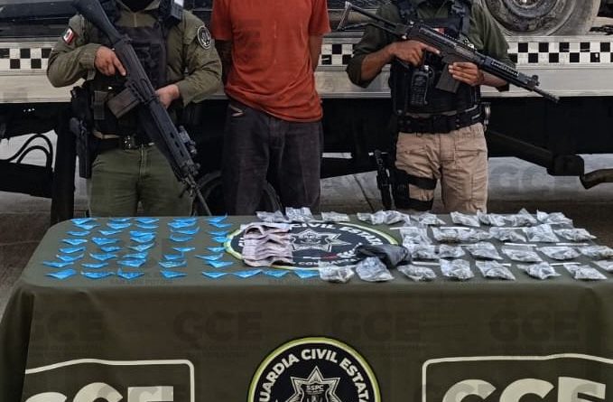 Nuestros agentes de la Guardia Civil Estatal, desplegaron un operativo en la colonia Estación, sitio donde detuvieron a José «N» de 43 años de edad, por los probables delitos de posesión de droga, tras asegurarles 43 dosis de metanfetaminas, 30 de marihuana y 10 cigarros artesanales.