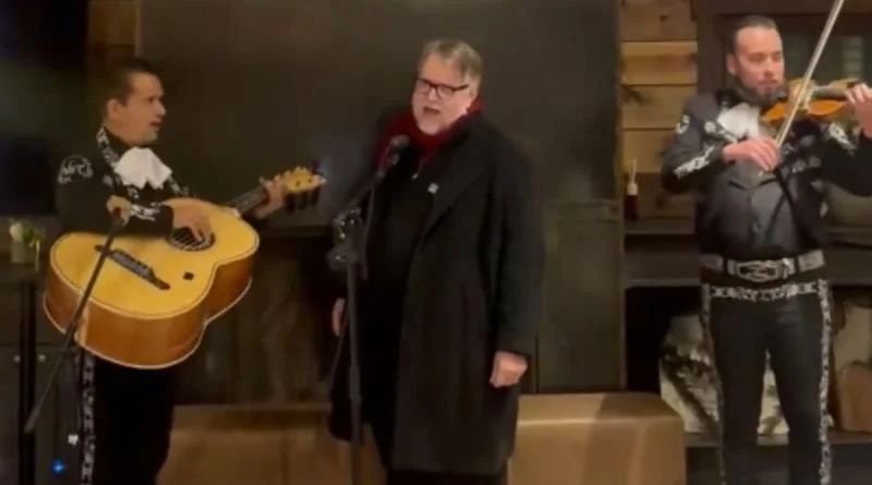 Esta participación reforzó el tono cercano del encuentro y antecedió al episodio musical que marcaría la velada. Posteriormente, Del Toro se integró al grupo de mariachis que amenizaba la reunión y tomó el micrófono para interpretar varias canciones emblemáticas de la música mexicana.
