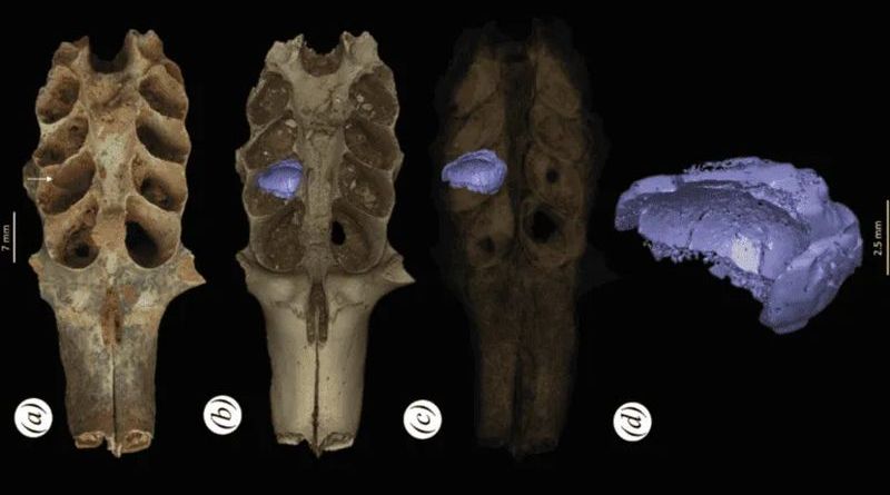 Los investigadores encontraron mandíbulas fósiles en cuyos alvéolos (los agujeros en que se insertan las raíces de los dientes) había un revestimiento interior liso, a diferencia de la textura rugosa del hueso. Viñola ya había visto algo similar en fósiles de dinosaurios en Montana, que se correspondían con capullos de avispas.