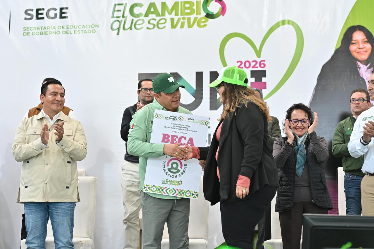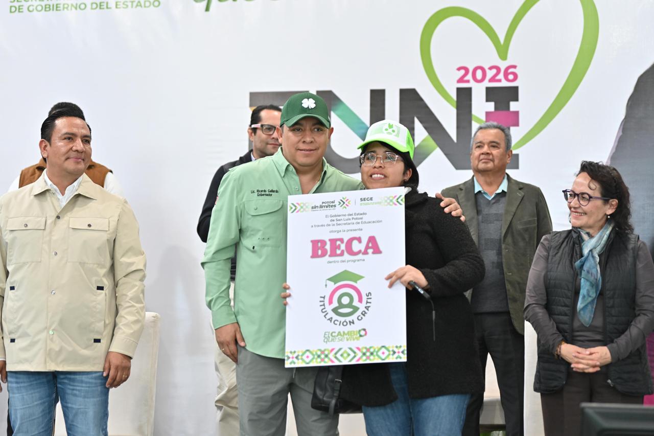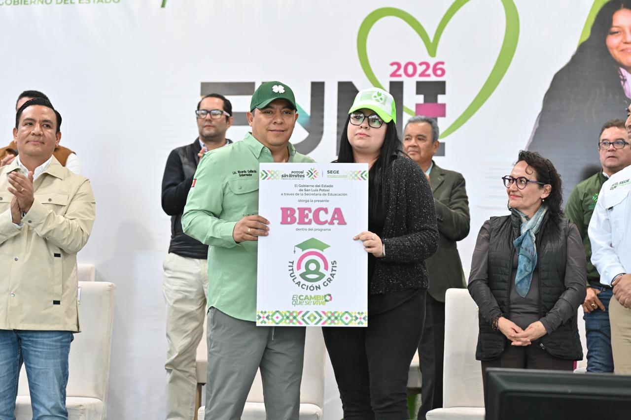 Con una proyección de asistencia de más de 10 mil alumnas y alumnos y la presencia de 80 instituciones educativas públicas y privadas, el Gobernador de San Luis Potosí Ricardo Gallardo Cardona, inauguró la Feria de Universidades Interactiva (FUNI) 2026 y entregó las primeras tres becas de titulación gratuita, que permitirá a miles de estudiantes concluir sus estudios y acceder con mayor facilidad a empleos mejor remunerados.