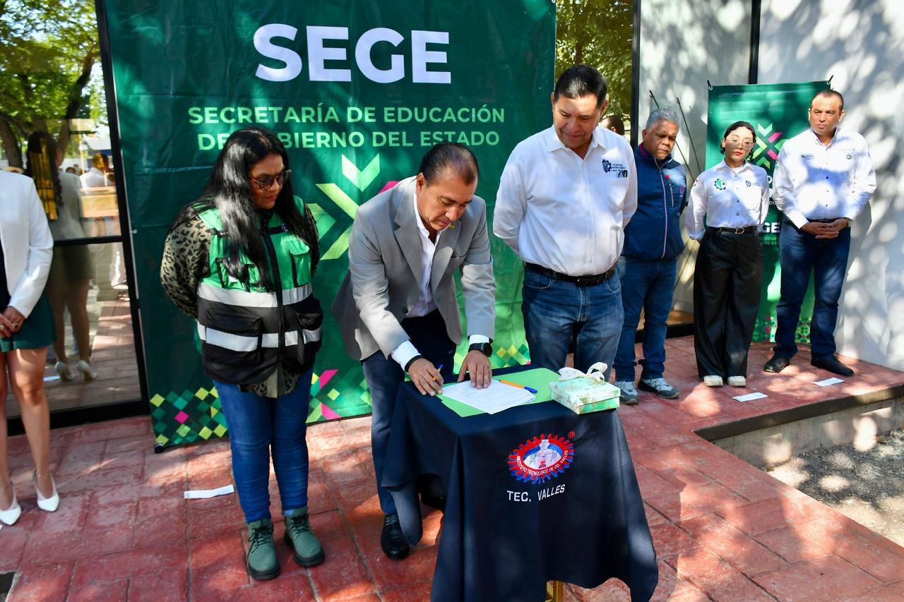 Para fortalecer la infraestructura educativa en las cuatro regiones del estado, fue inaugurado un nuevo edificio en el Instituto Tecnológico Nacional de México, Campus Ciudad Valles. La obra representó una inversión de 40 millones de pesos y permitirá ampliar y consolidar los espacios académicos del plantel, tal como lo instruyó el Gobernador Ricardo Gallardo Cardona.
