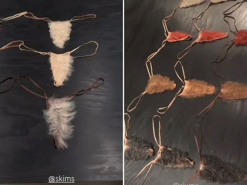 La colección, llamada ‘The Ultimate Bush’, incluye micro tangas confeccionadas en malla ultradelgada que llevan adherido pelo sintético en diferentes tonos y texturas. Los colores abarcan desde rubio miel hasta negro cacao, pasando por castaño, rojizo e incluso versiones más oscuras.