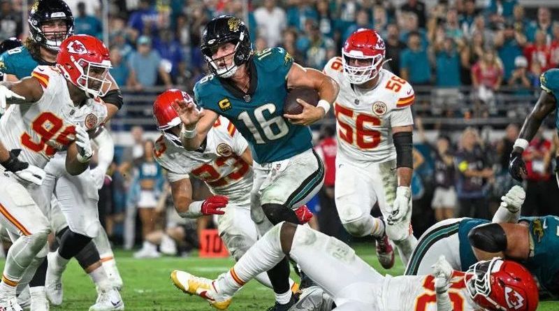 Trevor Lawrence, quarterback de los Jaguars de Jacksonville, lideró el lunes la victoria por 31-28 de su equipo contra los Chiefs de Patrick Mahomes, que tienen balance negativo en la temporada NFL con dos victorias y tres derrotas.
