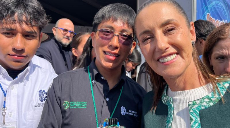 En el evento, Alfredo Damián de Jesús Rocha Rodríguez, estudiante de Ingeniería en Mecatrónica, presentó personalmente a la Presidenta su proyecto, demostrando el alto nivel de innovación, talento y capacidad tecnológica de la comunidad estudiantil del ITSSLP. Este logro refleja también el impulso sin límites que desde el Gobierno Estatal encabeza el Gobernador Ricardo Gallardo Cardona, fortaleciendo la educación tecnológica como motor de desarrollo para las y los jóvenes potosinos.