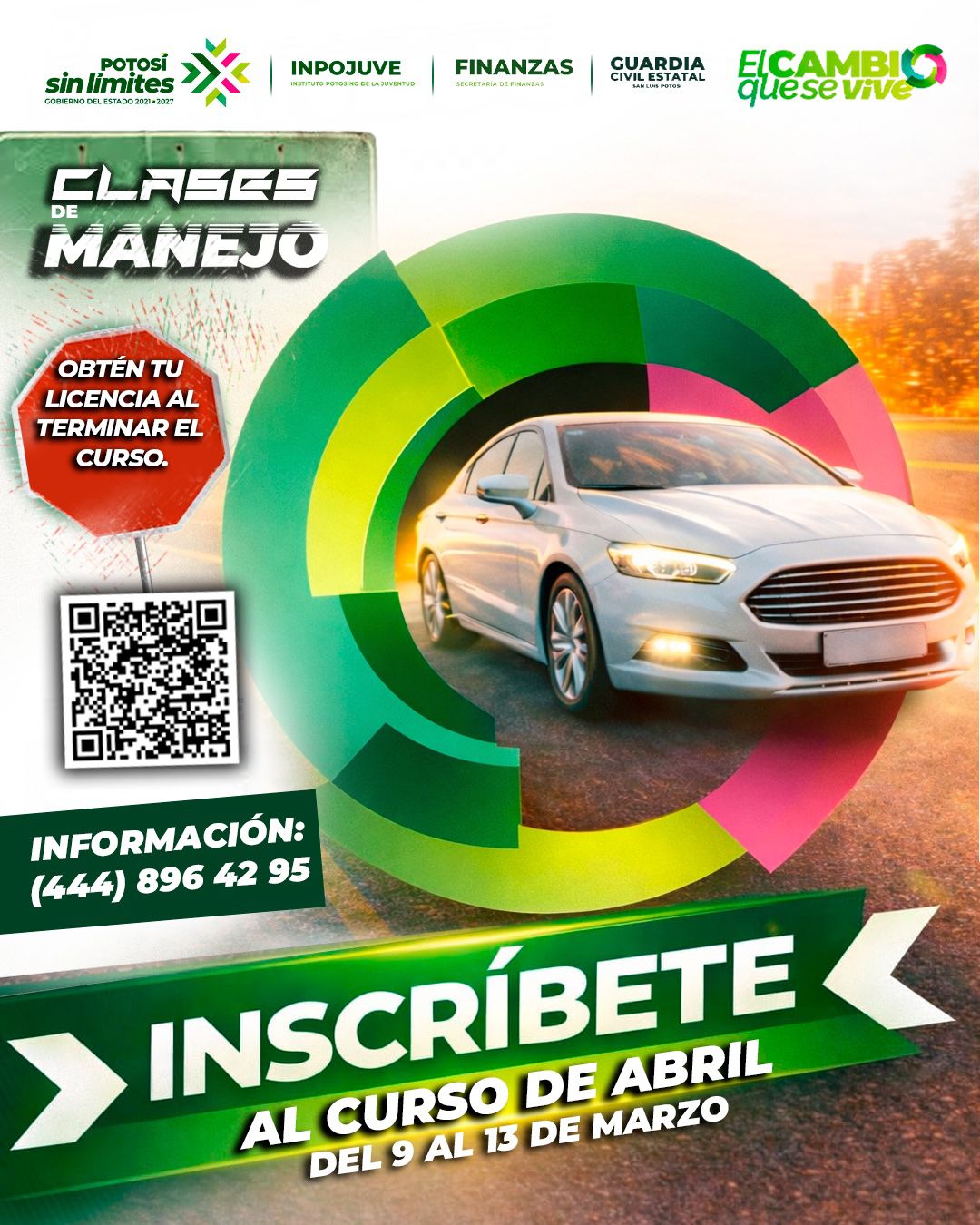 El Gobernador Ricardo Gallardo Cardona, a través del Instituto Potosino de la Juventud (Inpojuve), la Guardia Civil Estatal (GCE) y la Secretaría de Finanzas (Sefin), promueve el programa Jóvenes al Volante, que busca fortalecer la educación vial y la conducción responsable entre la juventud potosina. Esta iniciativa consolida oportunidades de aprendizaje y desarrollo sin límites para jóvenes de 15 a 29 años, demostrando que el cambio que se vive y se siente también impacta la seguridad vial en la entidad.