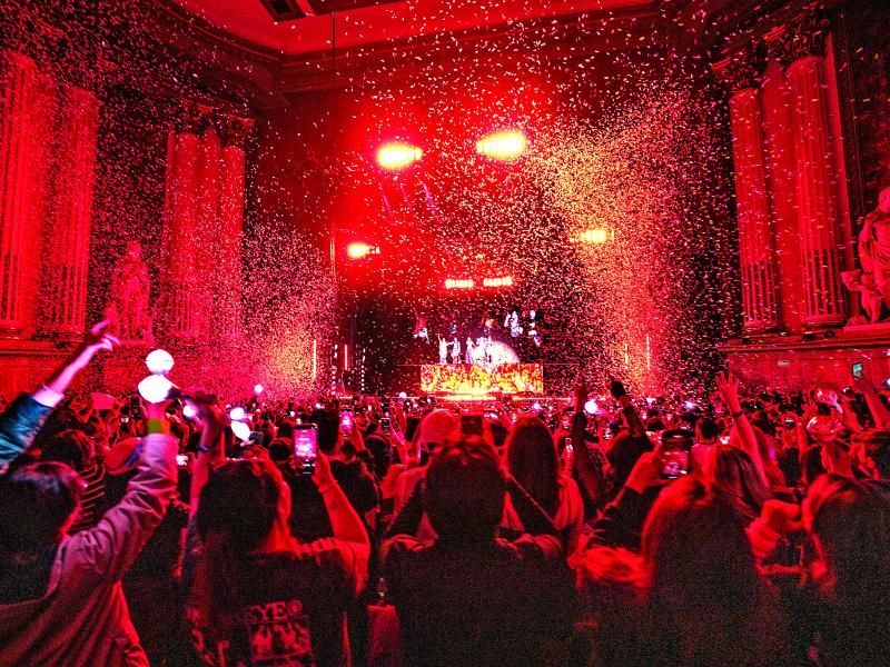 En Touch, uno de los momentos más coreados de la noche, el volumen del público superó por momentos al sonido del escenario. En Gabriela, canción con un ritmo más marcado y una coreografía que apuntaba directo a la audiencia, la reacción se volvió física: gente levantándose de sus butacas, brazos en alto y cuerpos siguiendo el tempo.