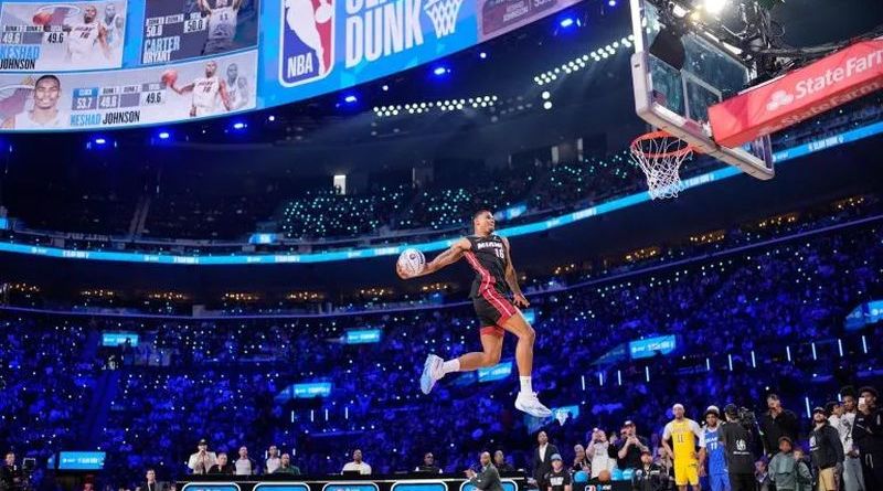 Keshad Johnson del Heat de Miami ganó el concurso de clavadas en la actividad sabatina previa al Juego de Estrellas de la NBA, pese a las puntuaciones perfectas del novato de San Antonio Carter Bryant en su primera ejecución de la ronda final.