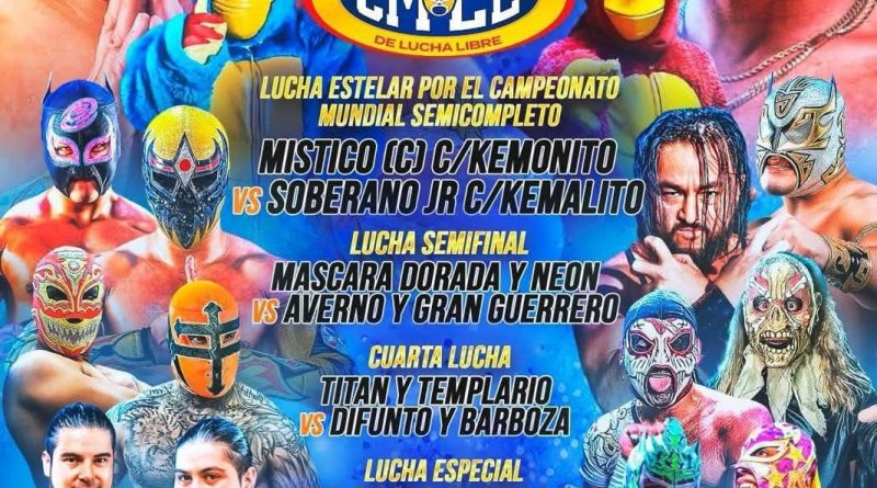 La cartelera estelar estará encabezada por la lucha por el Campeonato Mundial Semicompleto, en la que Místico, acompañado por Kemonito, enfrentará a Soberano Jr. y Kemalito, en un combate que promete intensidad y técnica. La lucha semifinal reunirá a Máscara Dorada y Neón contra Averno y Gran Guerrero, consolidando una noche de alto nivel para la afición local.