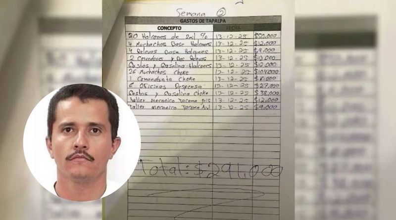 En otro desglose por 576 mil 490 pesos, de diciembre de 2025 y titulada «Gastos de Tapalpa», se revela que el capo gastó 138 mil pesos en concepto «policía Tapalpa» y 86 mil pesos en «policía Chikilistlán» (Chiquilistlán).