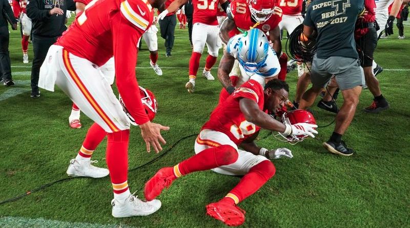 La NFL suspendió por un partido a Brian Branch, defensivo profundo de los Lions por golpear a JuJu Smith-Schuster, receptor de los Chiefs, al final del juego del domingo pasado.