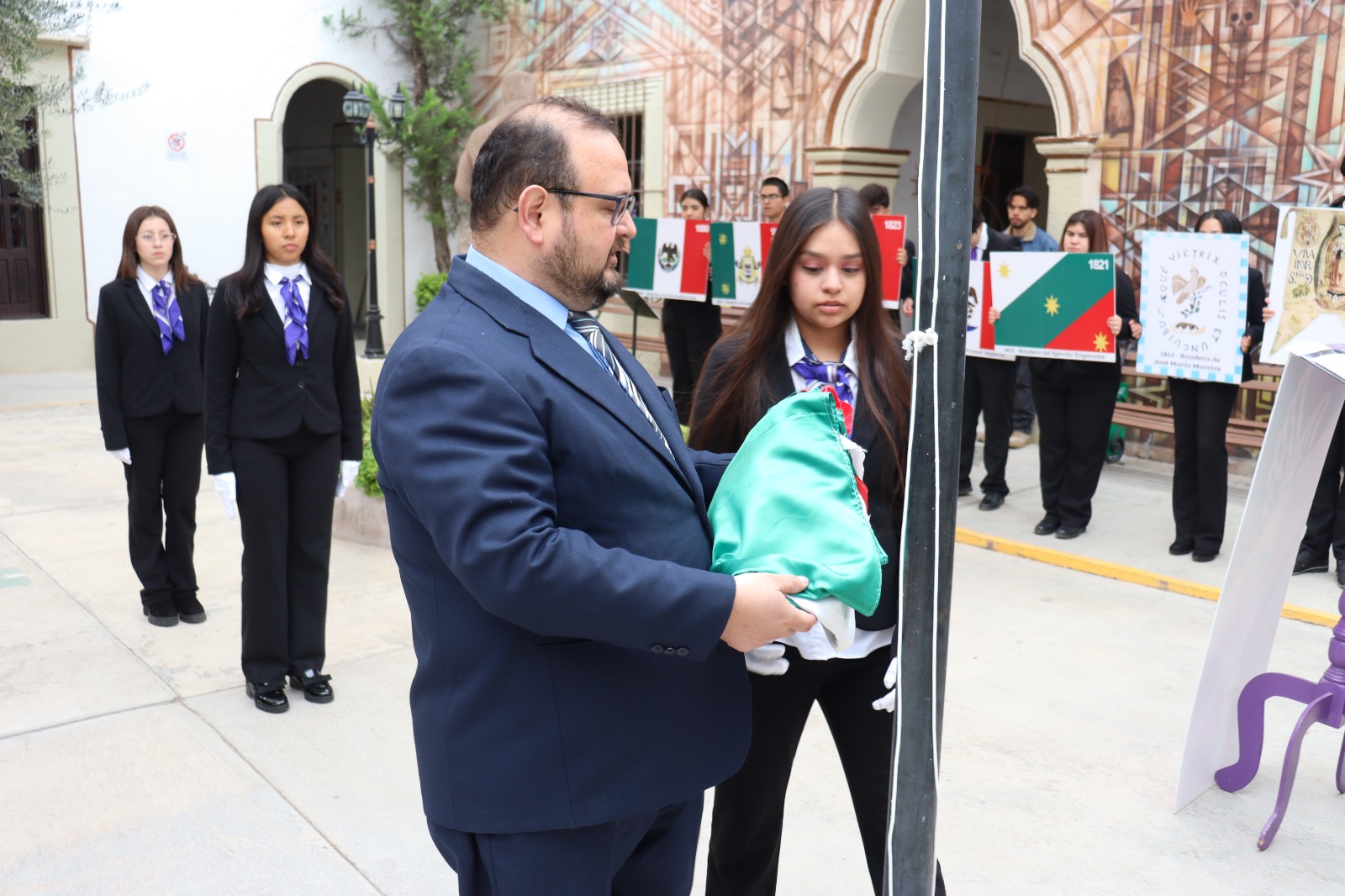 En el marco del 24 de febrero, fecha establecida solemnemente como Día de la Bandera conforme al Artículo 10 de la Ley sobre el Escudo, la Bandera y el Himno Nacional, la Escuela Preparatoria de la Universidad de Matehuala (Prepa Uni) llevó a cabo un significativo acto cívico en honor a nuestro lábaro patrio.