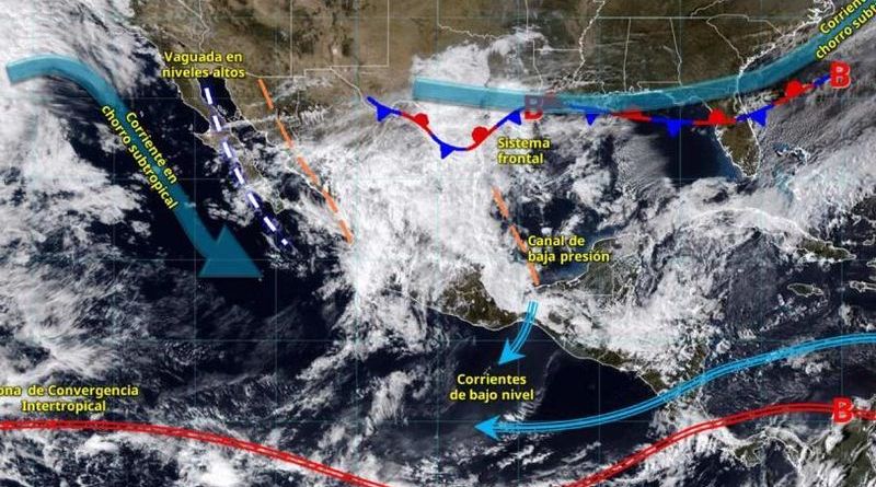 Un nuevo frente frío (número 30) se aproximará a la frontera norte de México propiciando vientos con rachas de 40 a 60 km/h en Coahuila. A su vez, un canal de baja presión sobre el sureste mexicano y la península de Yucatán, aunado al ingreso de humedad del océano Pacífico, golfo de México y mar Caribe, ocasionarán lluvias y chubascos.