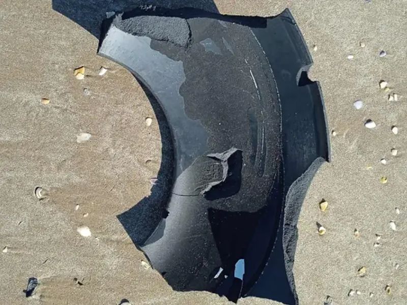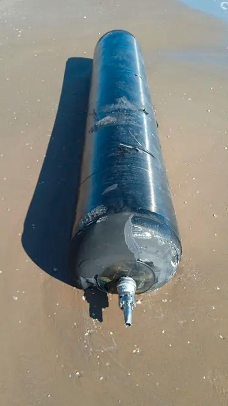 El hallazgo incluye un tanque metálico de 200 litros, presuntamente parte del sistema de propulsión del cohete, que apareció en la orilla de la playa.