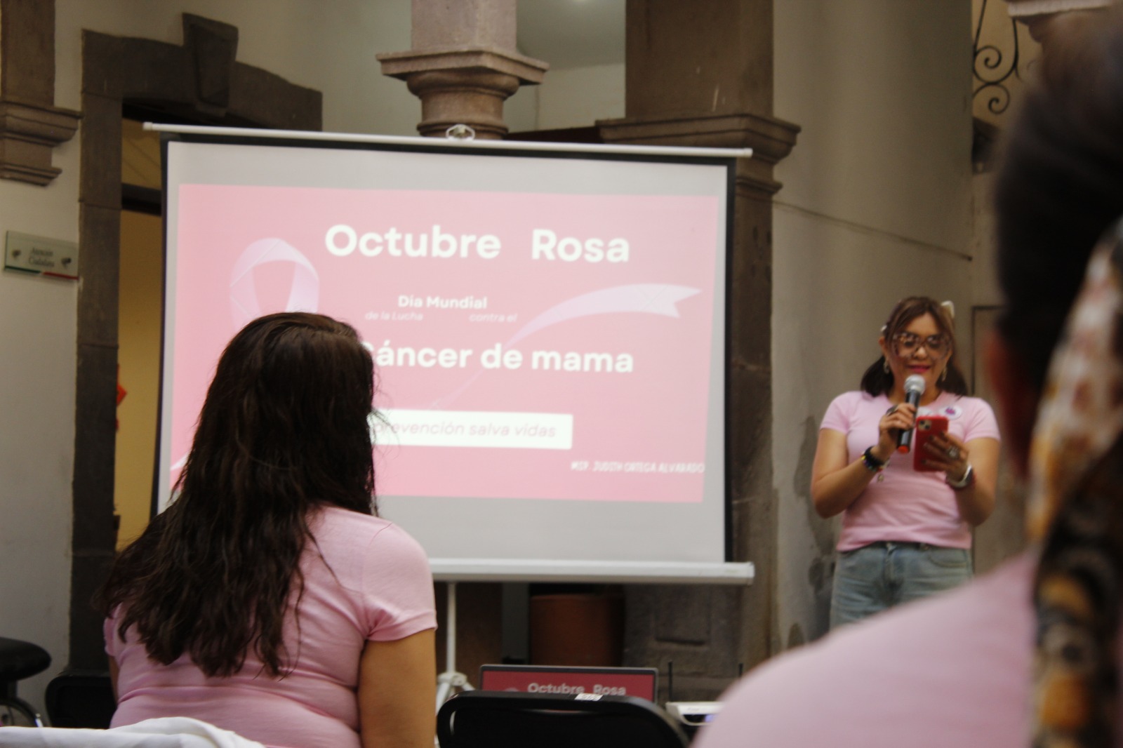 El Gobierno del Estado, encabezado por Ricardo Gallardo Cardona, fortaleció las acciones de sensibilización y prevención del cáncer de mama mediante conferencias coordinadas por la Secretaría de las Mujeres e Igualdad Sustantiva (Semujeres), en colaboración con la Universidad Autónoma de San Luis Potosí (UASLP) y los Servicios de Salud. Las actividades se realizaron en el patio central de la dependencia con el objetivo de promover la detección oportuna y fomentar el autocuidado en la población femenina.