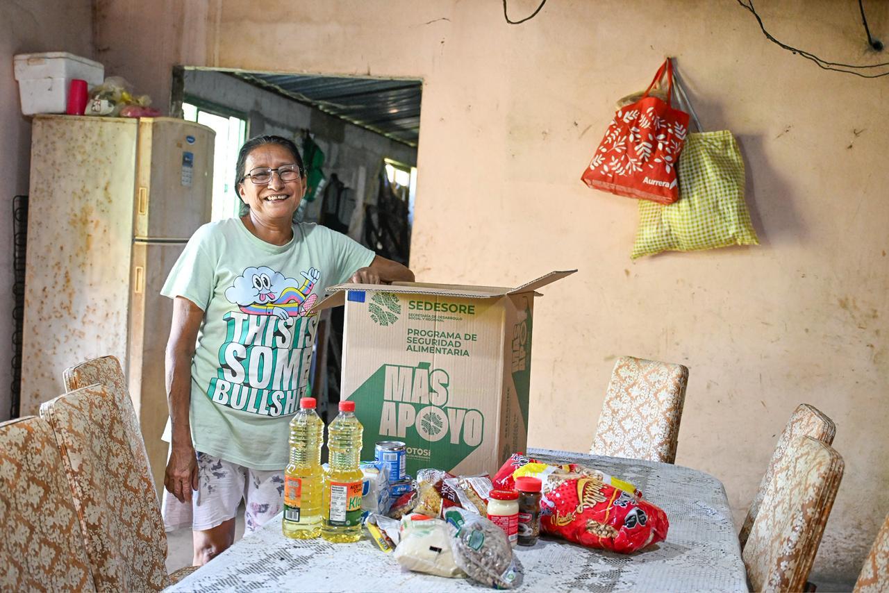 Adicionalmente las y los habitantes de la zona media, Rioverde, Cerritos, Alaquines y en el altiplano en Santo Domingo, Villa Hidalgo y Villa de la Paz también recibirán el beneficio del programa alimentario.