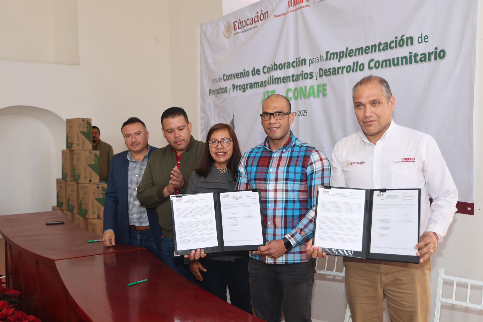 El Sistema Estatal para el Desarrollo Integral de la Familia (DIF) y la Coordinación Territorial del Consejo Nacional de Fomento Educativo (Conafe) firmaron un convenio que fortalece los programas alimentarios y de desarrollo comunitario en San Luis Potosí, consolidando el compromiso del Gobernador Ricardo Gallardo Cardona de llevar servicios sociales sin límites a las comunidades más necesitadas. La colaboración establece bases sólidas para implementar y dar seguimiento a proyectos que mejoren la calidad de vida de niñas, niños y adolescentes en centros educativos de educación básica.