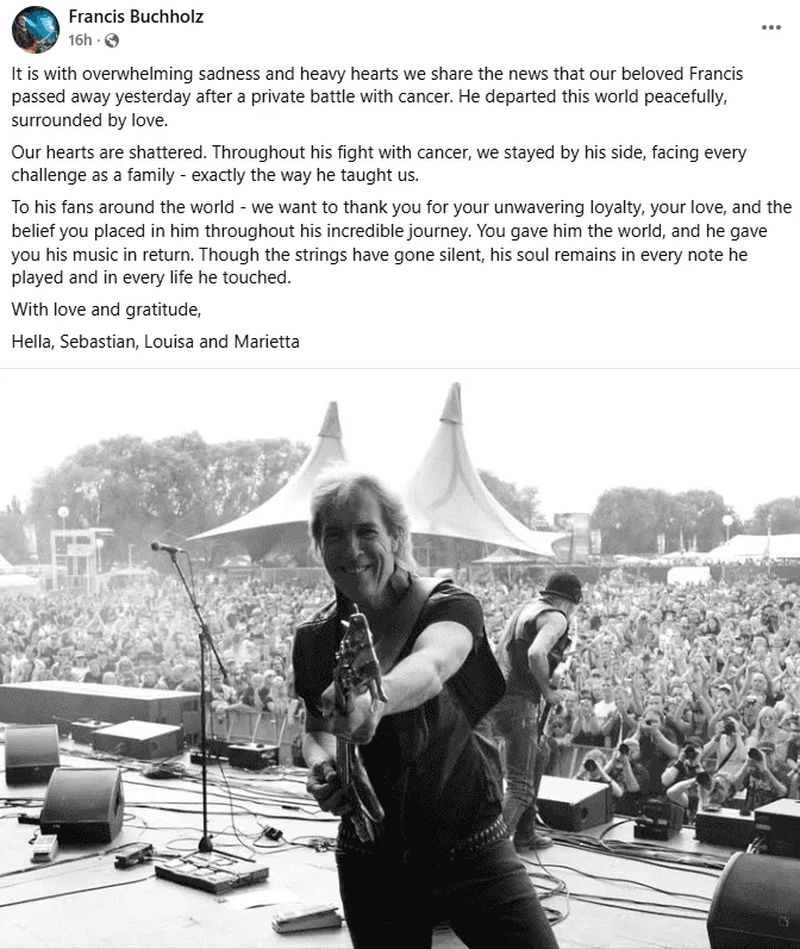 Con su muerte, el mundo del rock pierde a uno de sus referentes más influyentes, pero la música de Francis Buchholz continúa viva en cada riff, cada bajo y cada melodía que sigue inspirando a nuevas generaciones.
