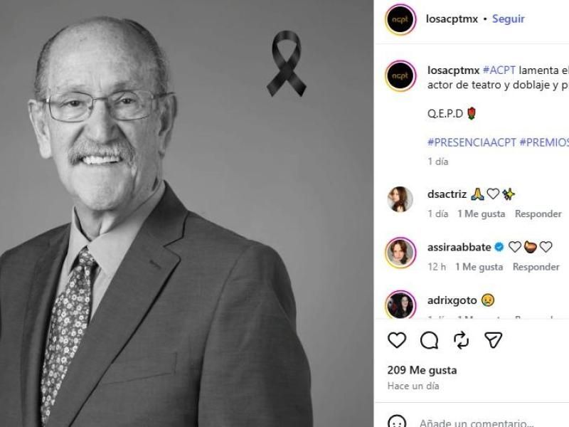 “#ACPT lamenta el fallecimiento de Juan José Zerboni, actor de teatro y doblaje y productor teatral”.