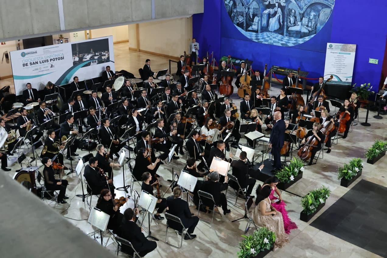 La Orquesta Sinfónica de San Luis Potosí, dirigida por Enrique Barrios González, se presentó con gran éxito en la Cámara de Diputados de la LXVI Legislatura como parte del ciclo cultural “Las Orquestas en los Estados”. Este logro forma parte del impulso del Gobierno del Estado, encabezado por Ricardo Gallardo Cardona, para consolidar sin límites la presencia cultural de San Luis Potosí y acercar el talento potosino a escenarios de relevancia nacional.