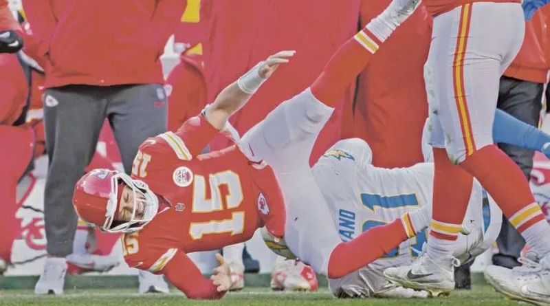 Justin Herbert, jugando con una mano izquierda rota, había ayudado a los Chargers a tomar la delantera con una remontada en la segunda mitad, pero Kansas City recuperó el balón con una oportunidad más. Mahomes estaba corriendo hacia la línea lateral y lanzando el balón fuera cuando fue derribado por el liniero defensivo Da’Shawn Hand, dejando al dos veces MVP sujetándose la rodilla izquierda.
