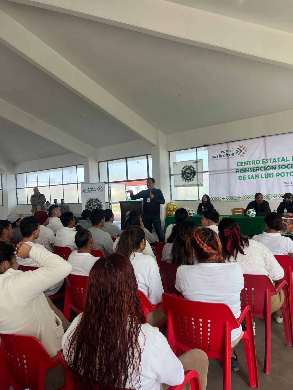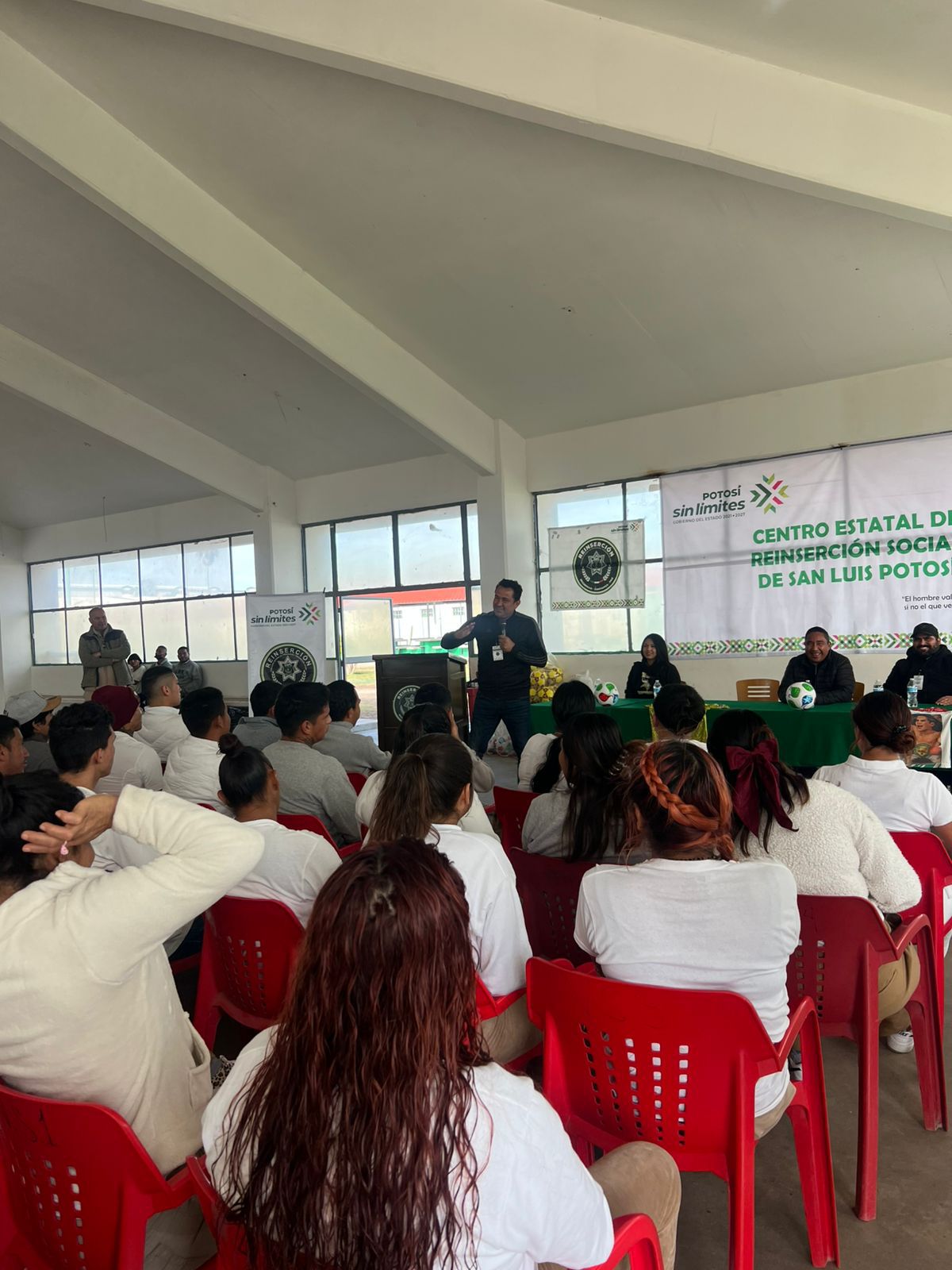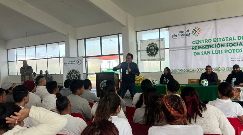 Cumpliendo con las instrucciones del Gobernador del Estado, Ricardo Gallardo Cardona, de promover sin límites la activación física y el desarrollo integral de las personas Privadas de la libertad, personal del Instituto Potosino de Cultura Física y Deporte (Inpode) acudió al Centro de Reinserción Social de La Pila, donde se llevó a cabo la plática motivacional “Más Allá del Fútbol”, impartida por ex director técnico de primera división Idelfonso “Pichus” Mendoza.