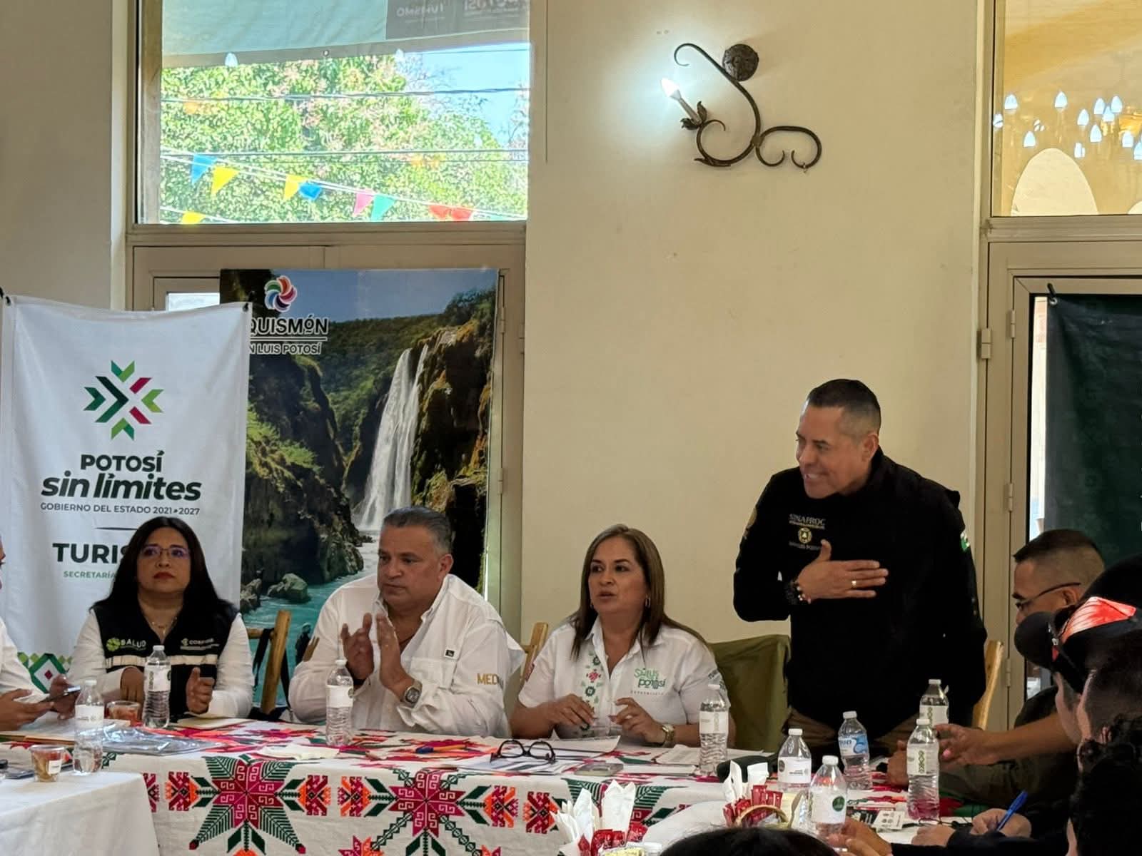 Estuvieron presentes en dicha reunión, el Alcalde de Ciudad Valles, David Medina Salazar, la Secretaria de Turismo Estatal, Yolanda Cepeda Echavarría, así como Directores Municipales de Turismo de la región Huasteca, representante de la COEPRIS y la comandancia regional de la Guardia Civil Estatal.