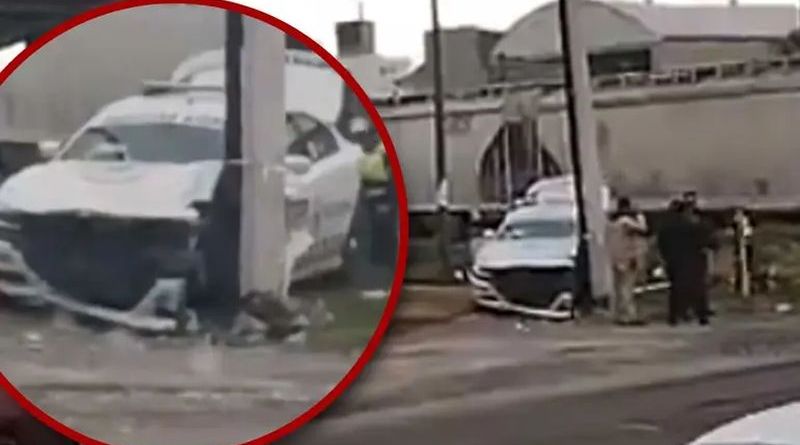De acuerdo con los primeros reportes, el accidente ocurrió cuando la unidad oficial fue alcanzada por el tren en movimiento, provocando daños materiales considerables. Afortunadamente, no se reportan personas lesionadas hasta el momento.