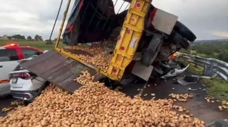 RAPIÑAN TRÁILER CARGADO CON PAPAS A PESAR DE UNA PERSONA MUERTA TRAS ACCIDENTE