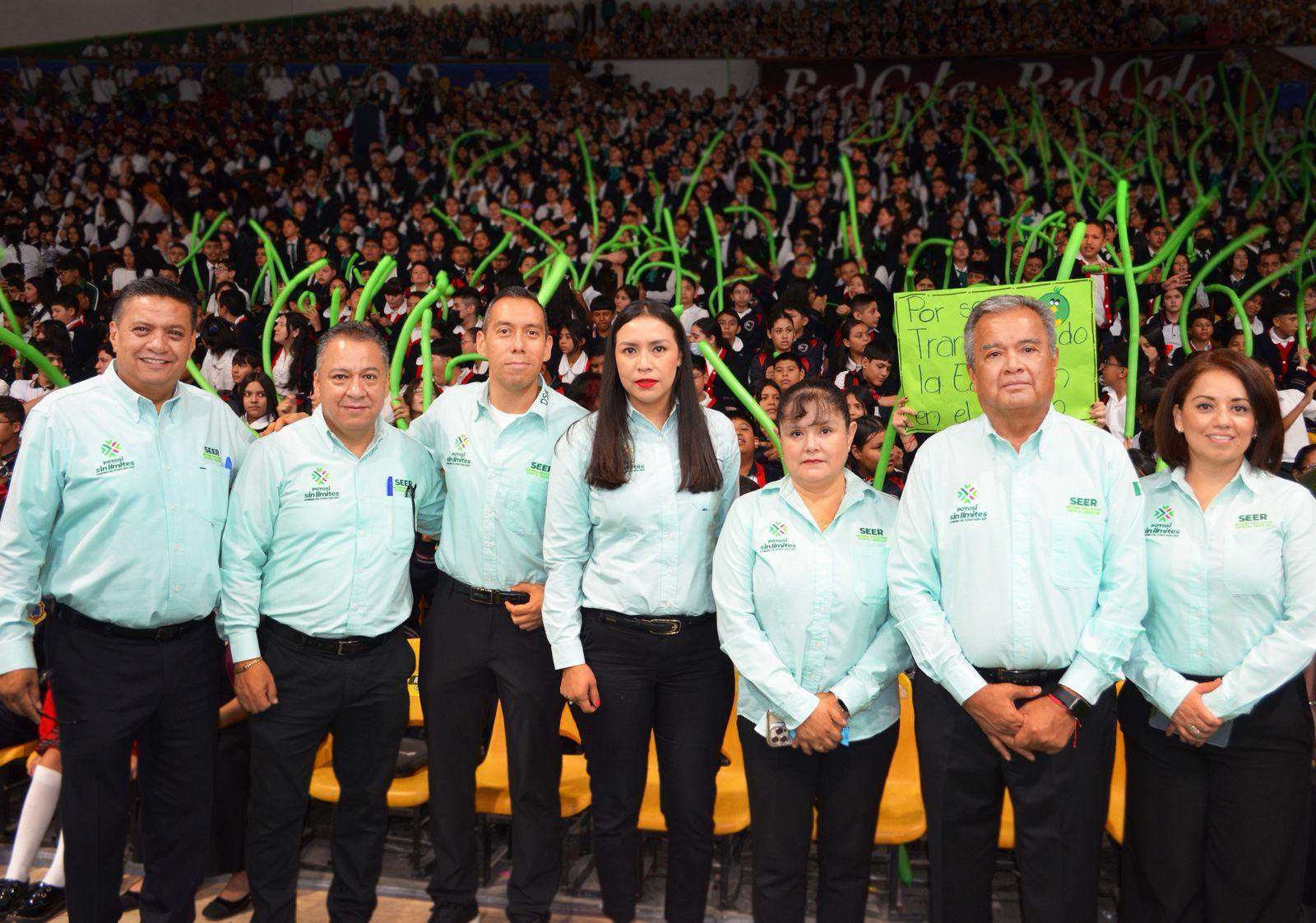 El director del SEER, Martín Rodríguez Ramírez, destacó los beneficios que fortalecen la educación potosina, como las pólizas de apoyo Seguro al Estudiante, la entrega de paquetes escolares completos y la construcción y remodelación de centros educativos, reafirmando así el compromiso de ofrecer una educación sin límites para la niñez y juventud del Estado.