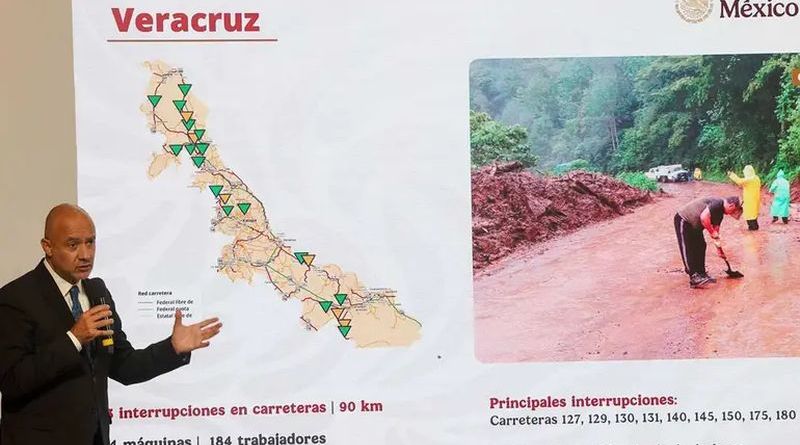 En San Luis Potosí hubo siete interrupciones en carreteras federales, en donde intervienen 31 máquinas y 48 trabajadores “y ya se está entrando a apoyar las carreteras estatales y caminos alimentadores”. En Veracruz se tuvieron 73 interrupciones con 90 km afectados en las carreteras federales, en donde están 94 máquinas con 184 trabajadores.