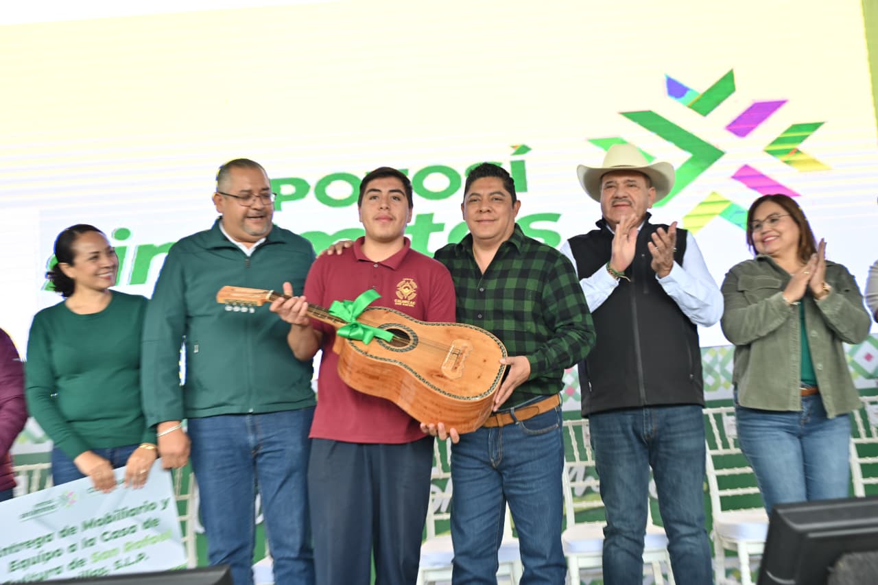 Además, Ricardo Gallardo entregó mobiliario, equipo tecnológico e instrumentos musicales a la Casa de Cultura de la localidad, en respuesta a una solicitud realizada por la comunidad educativa de la preparatoria que se atendió de inmediato, logrando concretar una alianza institucional con el ayuntamiento para la habilitación y operación del recinto cultural.