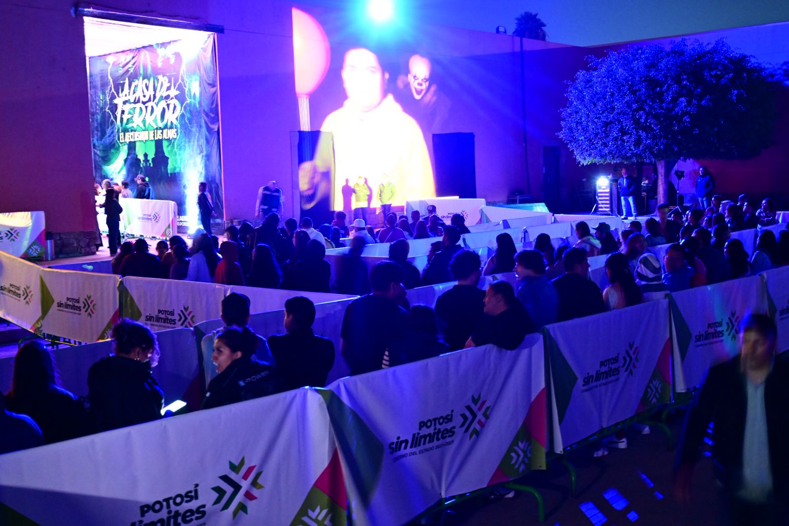 Luego de realizar el recorrido por donde antiguamente se encontraba la penitenciaría del Estado, el Gobernador invitó a las y los potosinos y visitantes nacionales y extranjeros a recorrer escenarios ambientados con personajes, efectos especiales y sorpresas que despertarán la adrenalina.