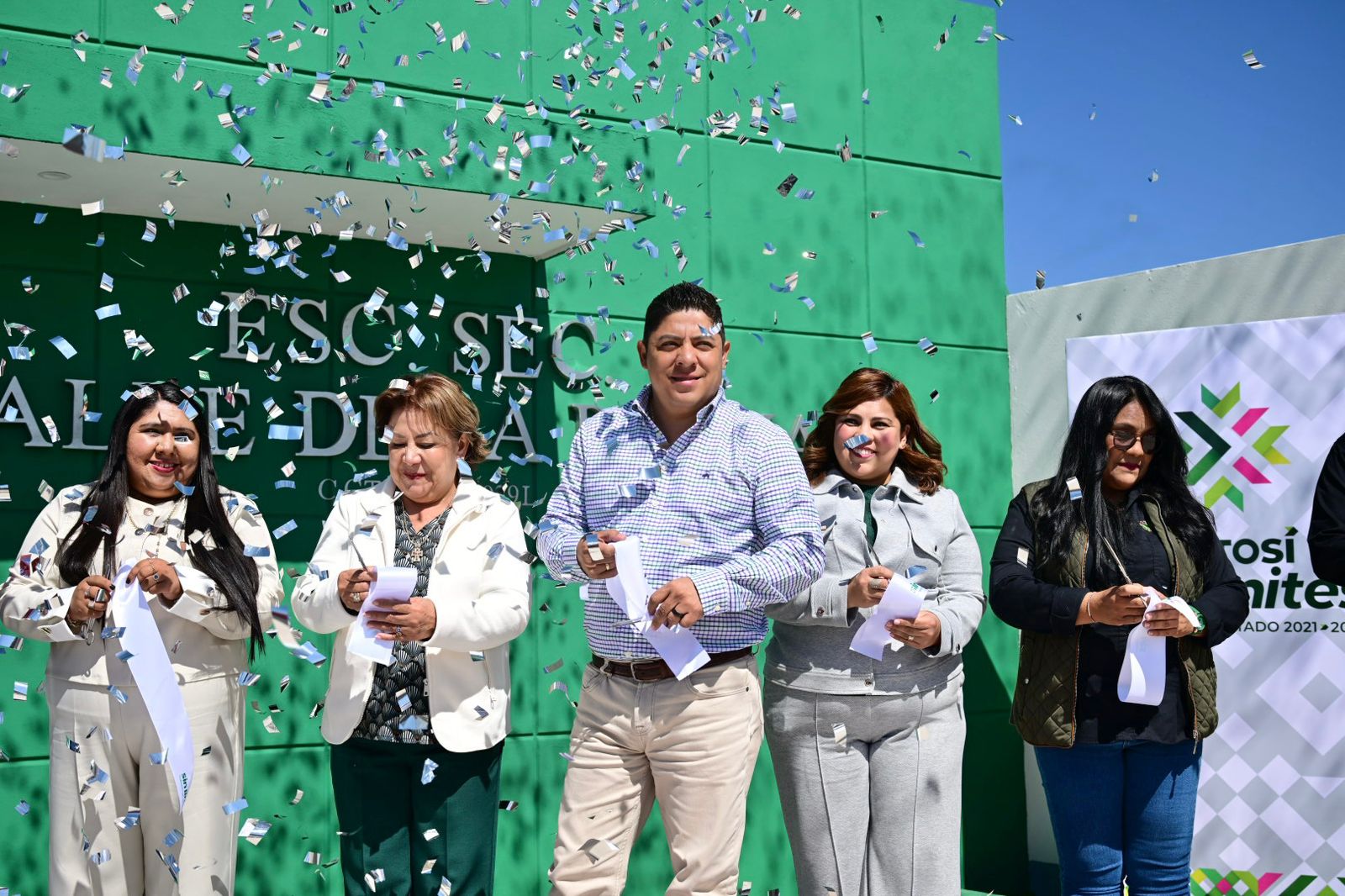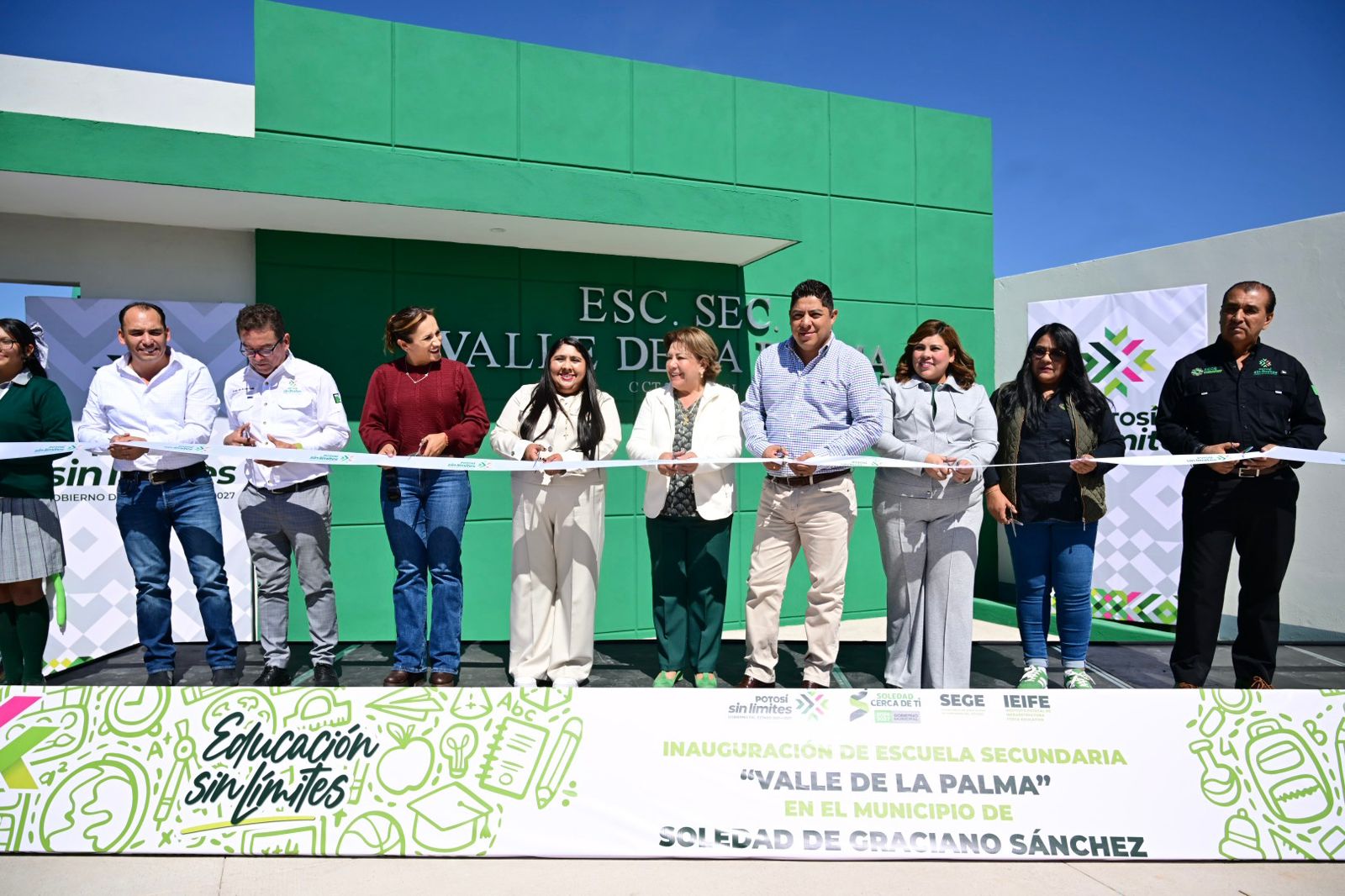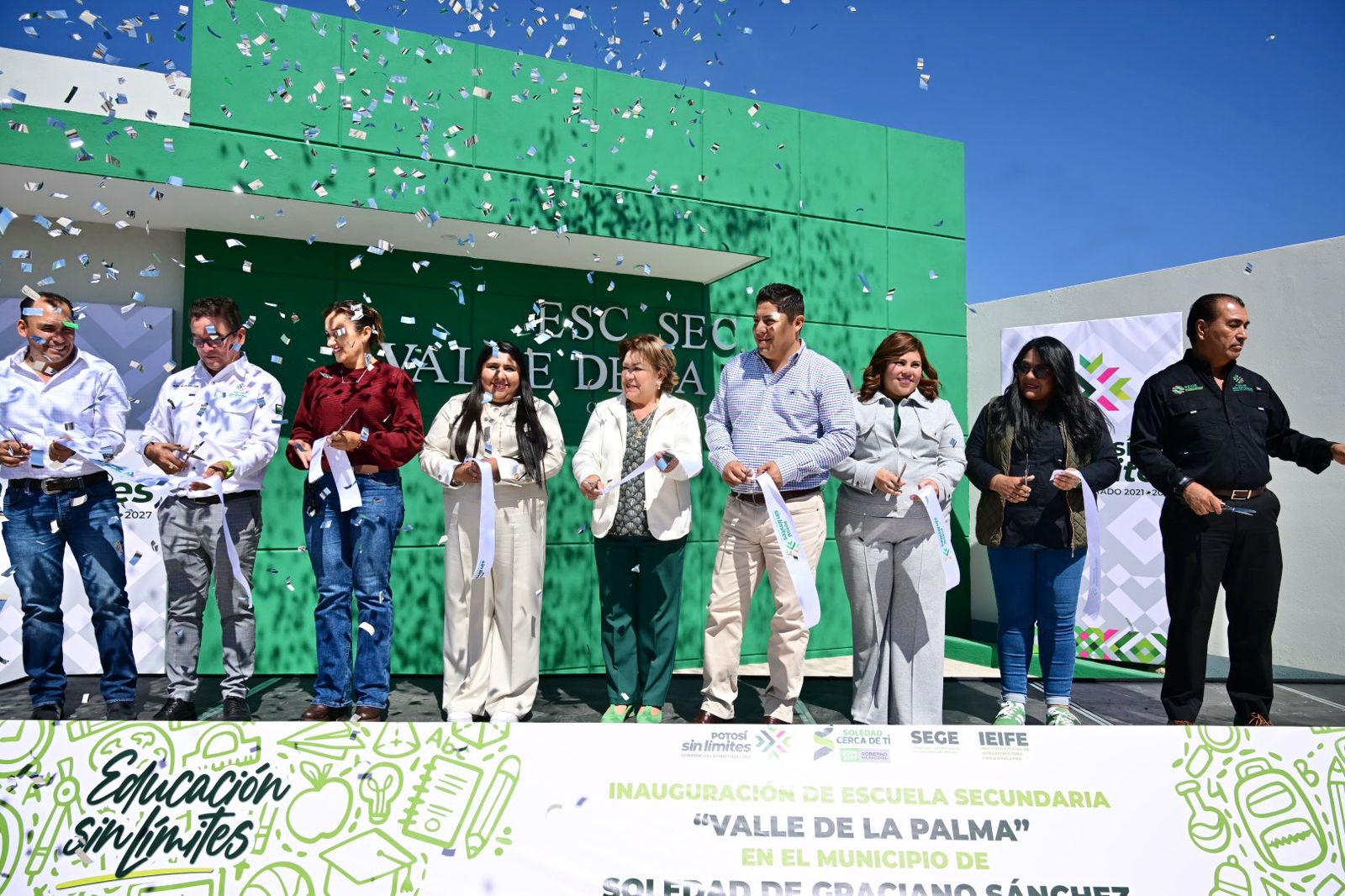 Posteriormente, el Gobernador inauguró la totalmente nueva Escuela secundaria general “Valle de la Palma”, que cuenta con aulas, dirección, sanitarios, plaza cívica, red eléctrica e instalaciones para una educación sin límites, garantizando espacios dignos y modernos para la niñez y juventud soledense.