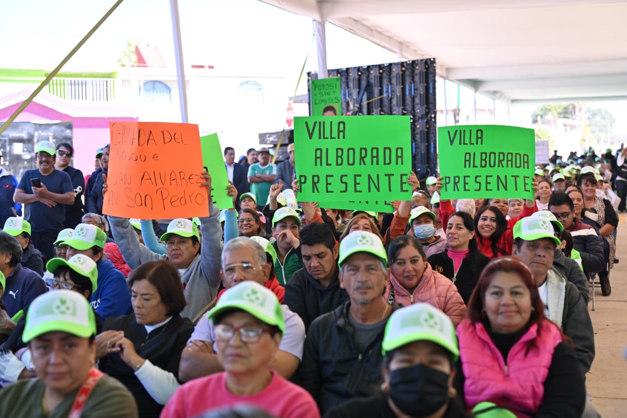 Ayer arrancó obras de entubamiento de aguas negras y entregó un área recreativa en el municipio de Pozos y este día entregó obras de calidad en lo que antes era una de las colonias más marginales de Soledad de Graciano Sánchez y que hoy tiene el 95 por ciento de sus calles pavimentadas con concreto hidráulico.