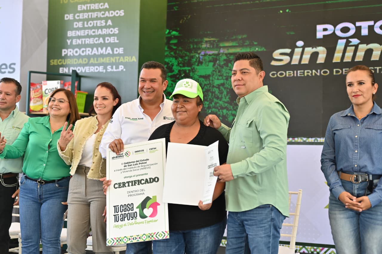 • Con el programa “Tu Casa Tu Apoyo”, el Gobernador de San Luis Potosí entregó lotes a beneficiarios de Ciudad Fernández y Rioverde para garantizarles un patrimonio seguro y digno.