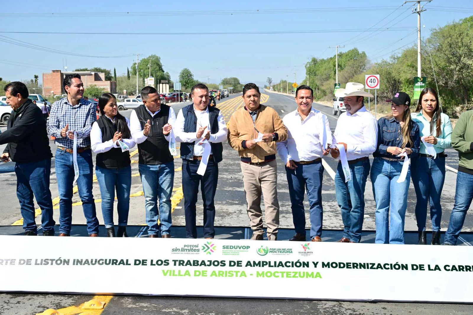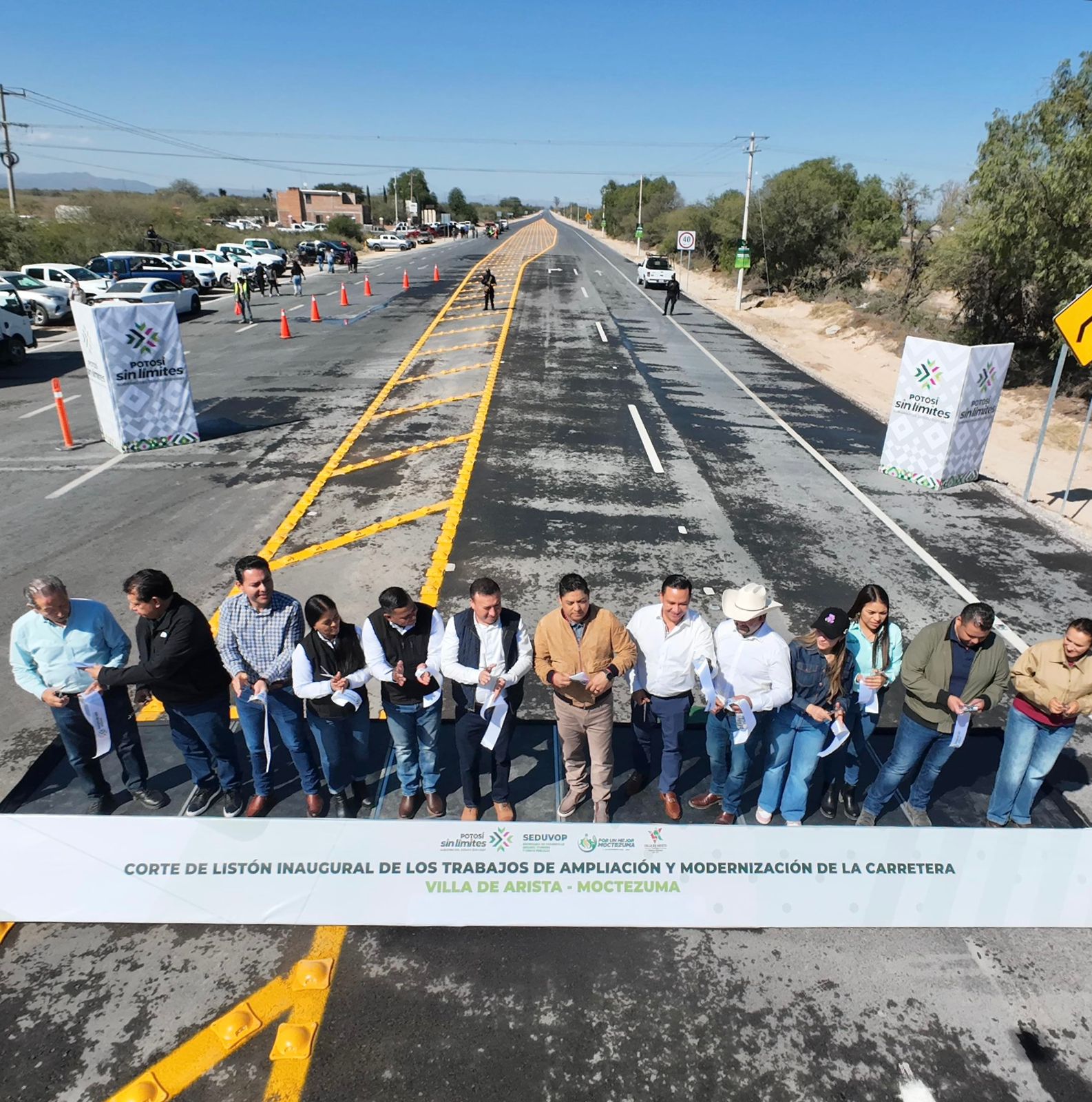 El Gobernador de San Luis Potosí Ricardo Gallardo Cardona, inauguró la ampliación y modernización de la Carretera Villa de Arista–Moctezuma, proyecto que brinda una movilidad sin límites, seguridad y ahorro en tiempos de traslados de transportistas, agricultores, estudiantes, habitantes y turistas en sus 23.4 kilómetros de longitud, dos carriles y acotamientos, cuyo monto de inversión ascendió a los 466 millones de pesos.