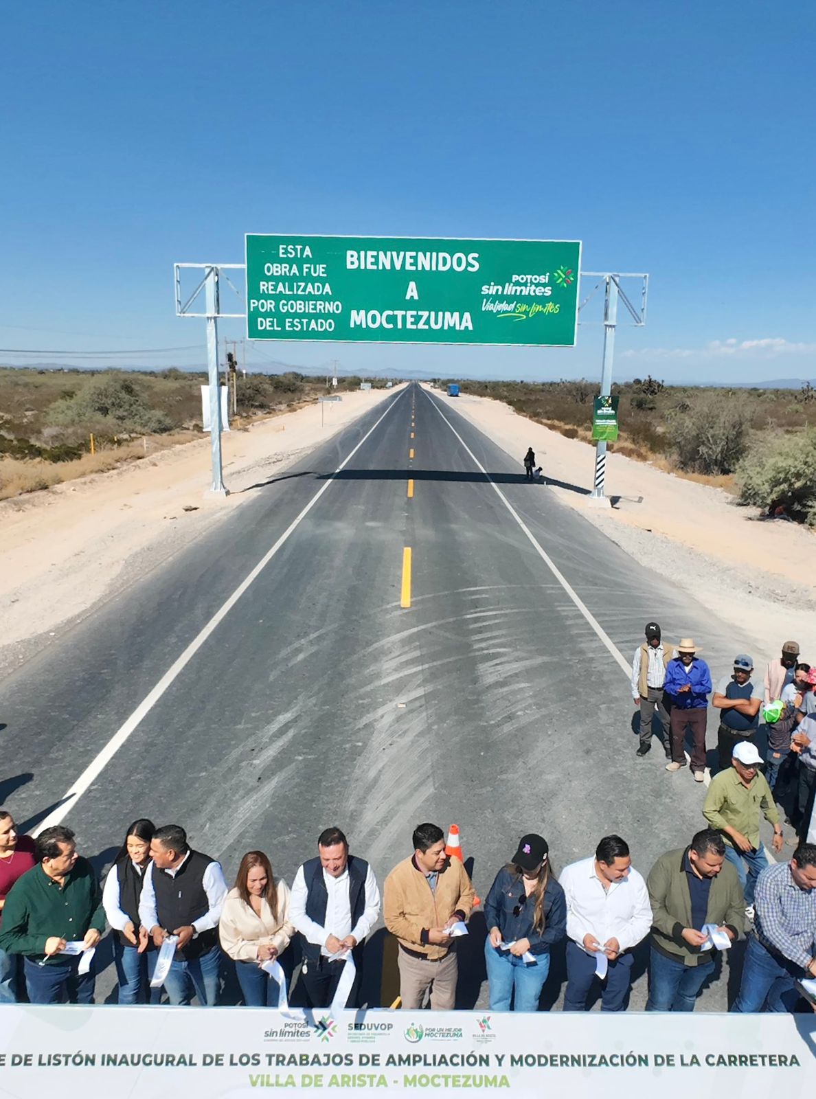 De igual forma, el Gobernador del Estado anunció el proyecto “Altiplano Sin Límites”, el cual contempla la construcción de una nueva carretera moderna, amplia y segura que conectará los municipios de Moctezuma, Venado y Charcas hasta llegar a Matehuala, además de la rehabilitación del camino de Villa de Arista a la Carretera 57.