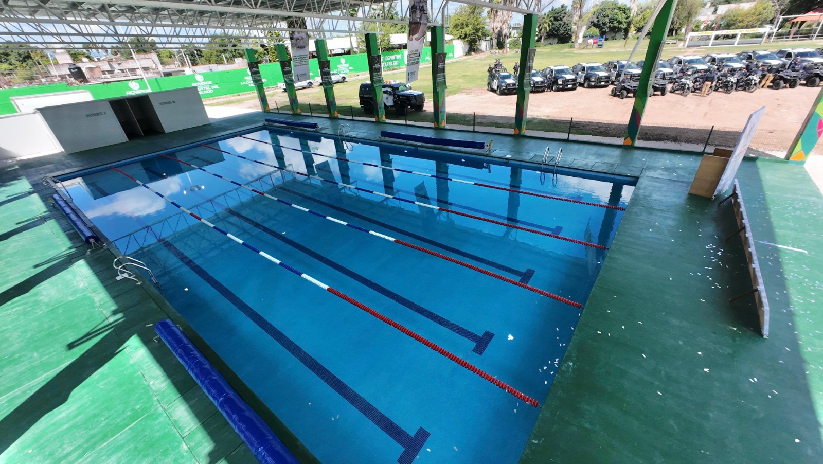 • El Gobernador del Estado entregó más patrullas de última generación para la Policía Municipal e inaugura la Alberca Techada del Deportivo Ferrocarrilero.