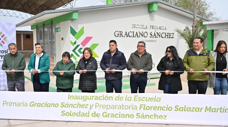 Con la entrega de la primaria “Graciano Sánchez” y la preparatoria “Florencio Salazar Martínez” en Soledad de Graciano Sánchez, el Gobernador reafirma su compromiso de atender el diálogo que se realiza con padres y madres de familia, a quien se les escucha, atiende y cumple en beneficio de sus hijas e hijos. Los nuevos planteles cuentan con seis nuevas aulas, equipadas con mesabancos y pizarrones, así como una red eléctrica segura y una cancha deportiva techada.