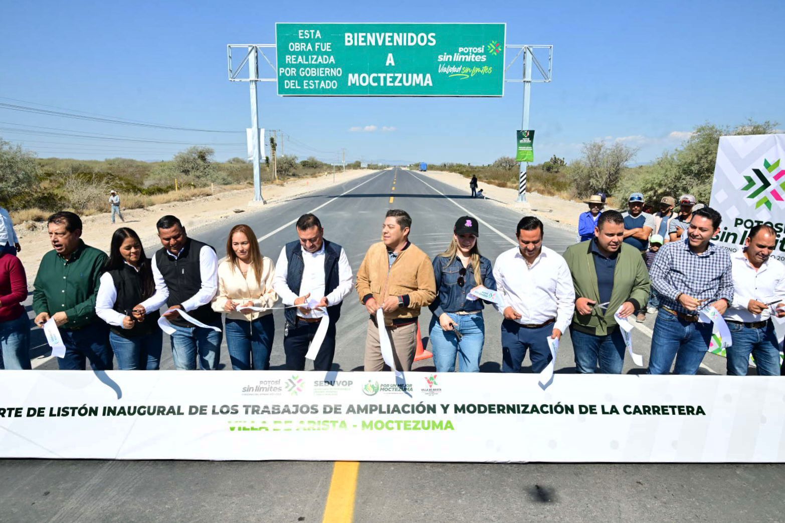 Tan solo en las últimas semanas, y como parte de un intenso trabajo, el Gobernador del Estado inauguró la supercarretera Villa de Arista–Moctezuma, una obra de 466 millones de pesos que abarca 23.4 kilómetros, puso en operación el renovado camino Villa de Ramos-San Francisco-Los Hernández, arrancó la modernización de la carretera 22 en Zaragoza y en Villa de Pozos inició la rehabilitación de avenida Seminario y el entubamiento del Río Españita.