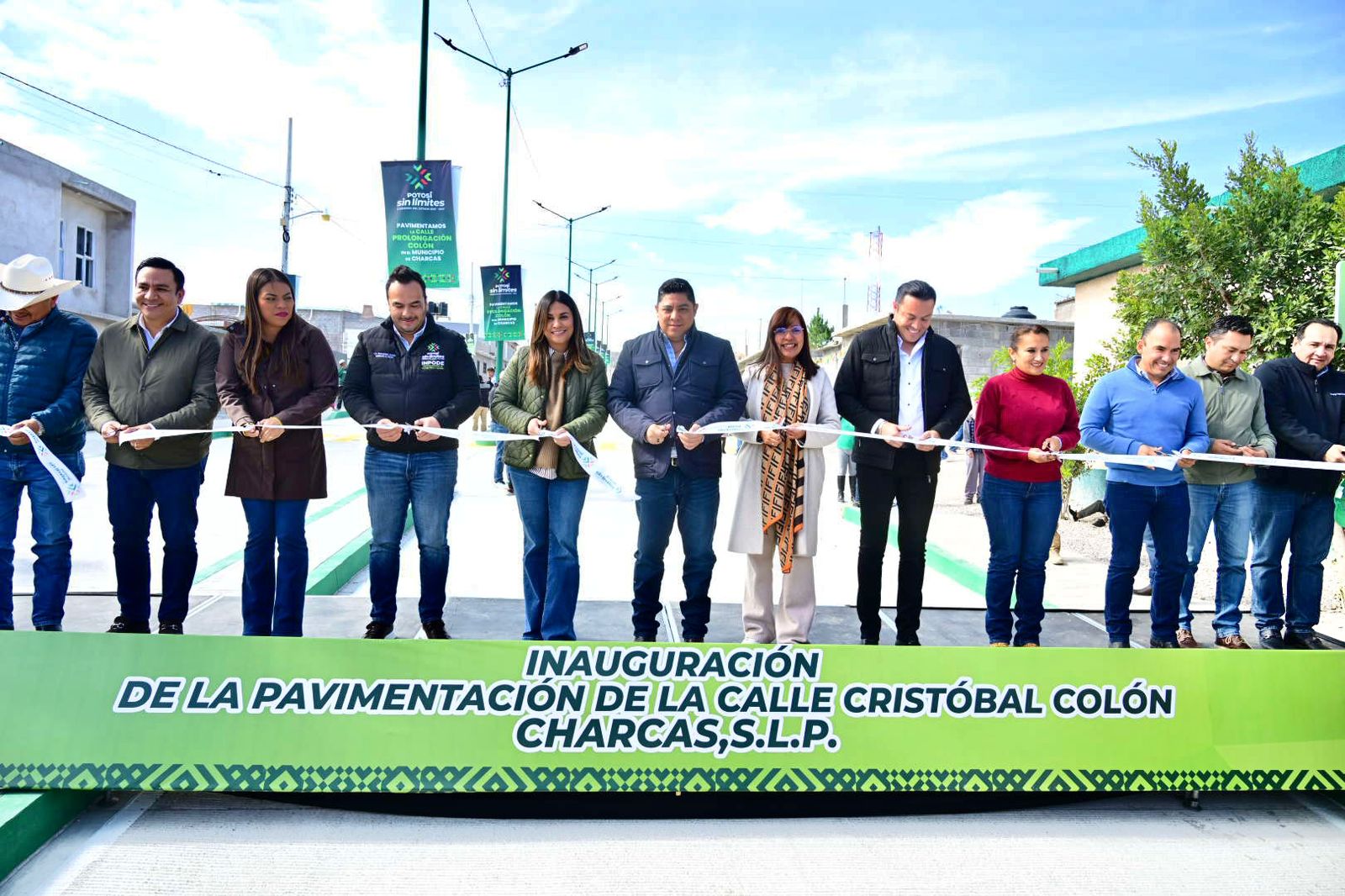 • En Charcas inauguró la pavimentación de la Calle Colón e inició la construcción de la unidad deportiva municipal.