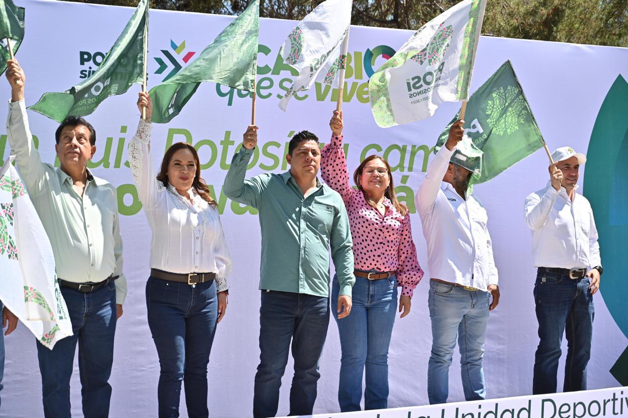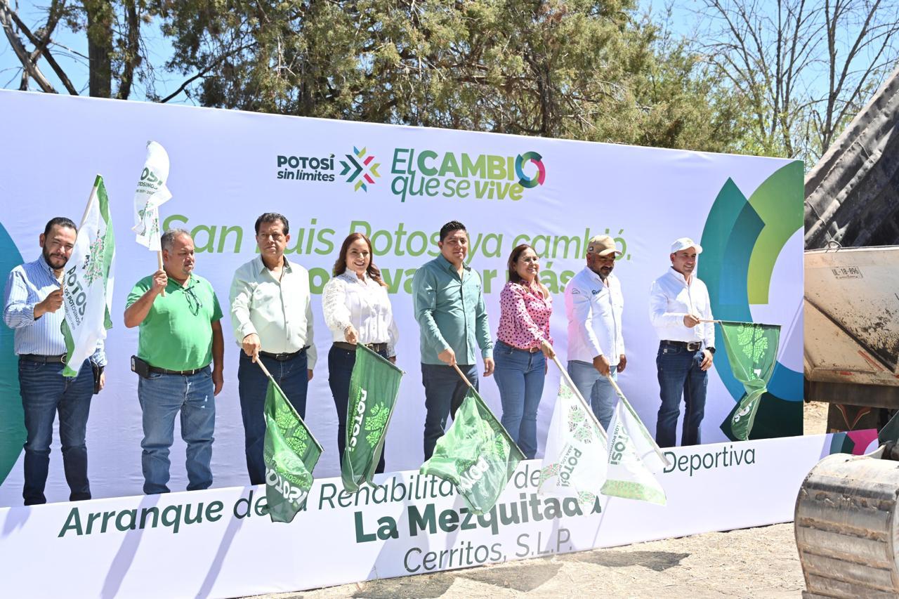 El Gobernador de San Luis Potosí, Ricardo Gallardo Cardona, arrancó en Cerritos la rehabilitación de la Unidad Deportiva “La Mezquitada”, que fortalecerá sin límites el apoyo al talento deportivo local con canchas, juegos infantiles, pista de atletismo e infraestructura parecida a la de los parques Tangamanga.