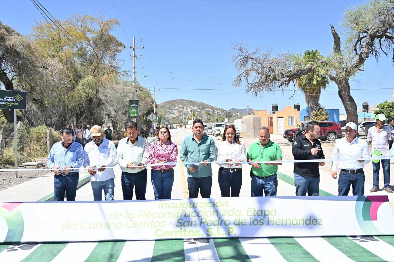 En el cambio que se vive y se siente, el Gobernador Ricardo Gallardo, entregó en el municipio la segunda etapa del renovado camino a la comunidad San Pedro de los Hernández, el cual expande la movilidad en la región con una nueva vialidad de carpeta asfáltica señalizada, segura y moderna para que habitantes, comerciantes y trabajadores del campo tengan traslados más rápidos y eficientes, dejando atrás el rezago social y los caminos de tierra.