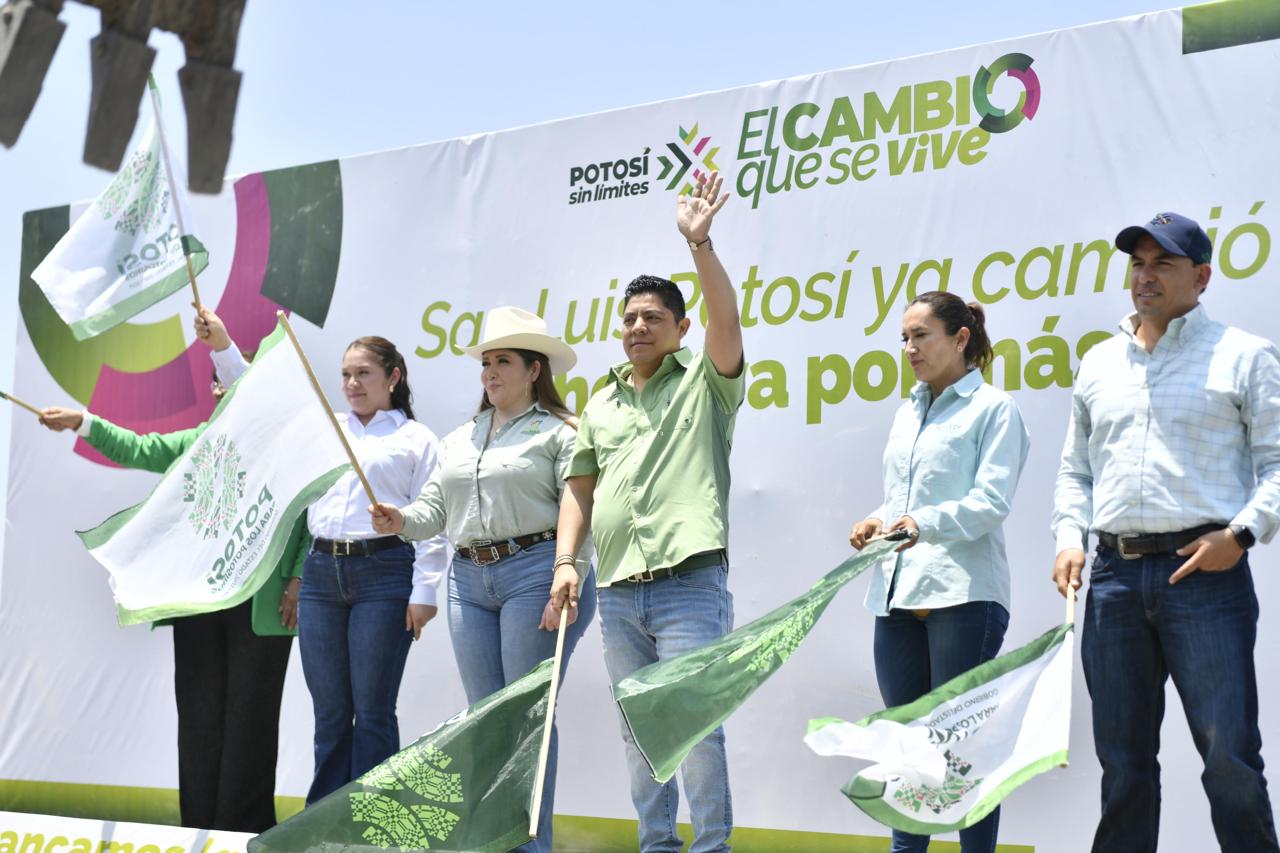 - Ante la alegría de las familias del Pueblo Mágico, el Gobernador de San Luis Potosí arrancó la construcción del camino Papagayos-Aguazarca y de la Unidad Deportiva Municipal en la cabecera.