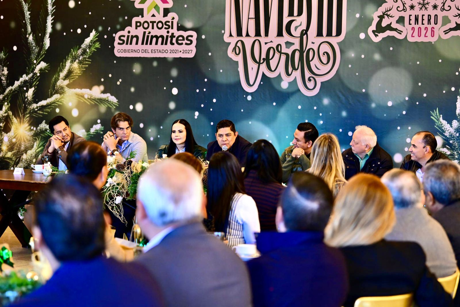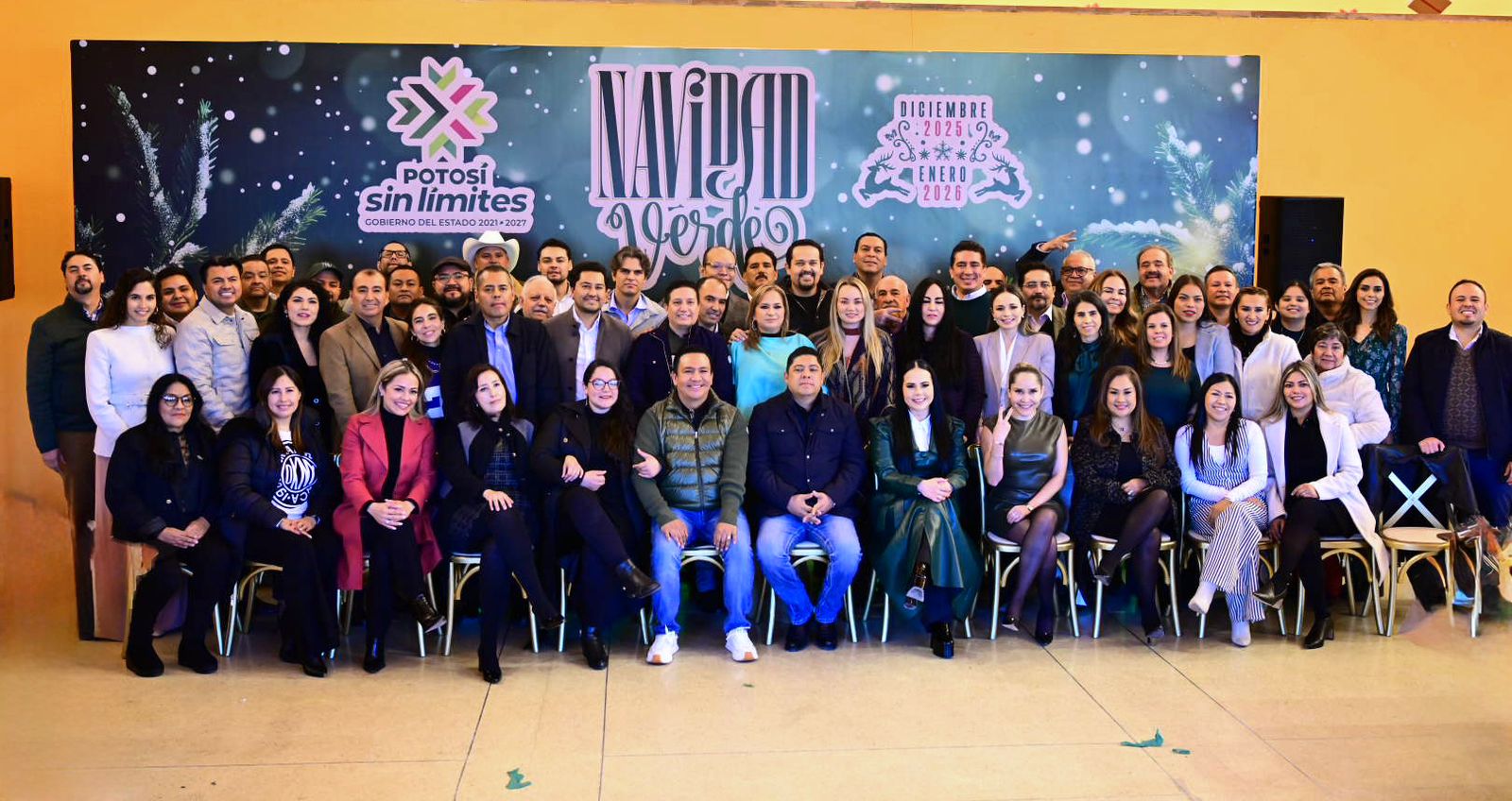 El Gobernador de San Luis Potosí Ricardo Gallardo Cardona, encabezó una reunión de trabajo y convivencia con motivo de las fiestas decembrinas con el gabinete legal y ampliado del Gobierno del Estado, donde hizo un llamado a sus colaboradoras y colaboradores a reforzar y consolidar en 2026 todo el trabajo realizado, con el objetivo de seguir mejorando las condiciones de vida de las familias en las cuatro regiones de la Entidad.